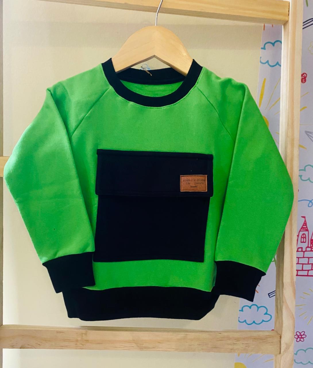 💚🖤 Casaco Alegria Verde limão bolso preto – Fábula Encantada 🌟