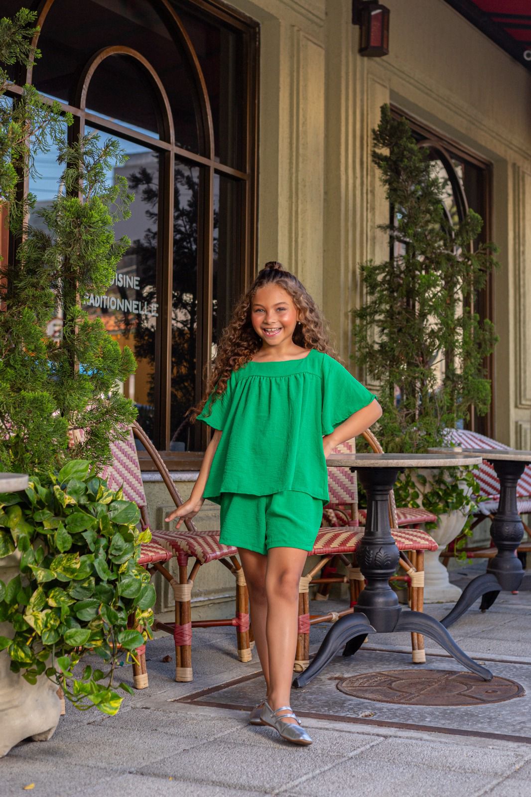 O Conjunto Mari Festa Verde Escuro foi criado para deixar sua princesa ainda mais linda em momentos especiais! A blusinha traz mangas godê super charmosas e um design moderno com fitas para amarração nas costas, garantindo um caimento perfeito e cheio de estilo.