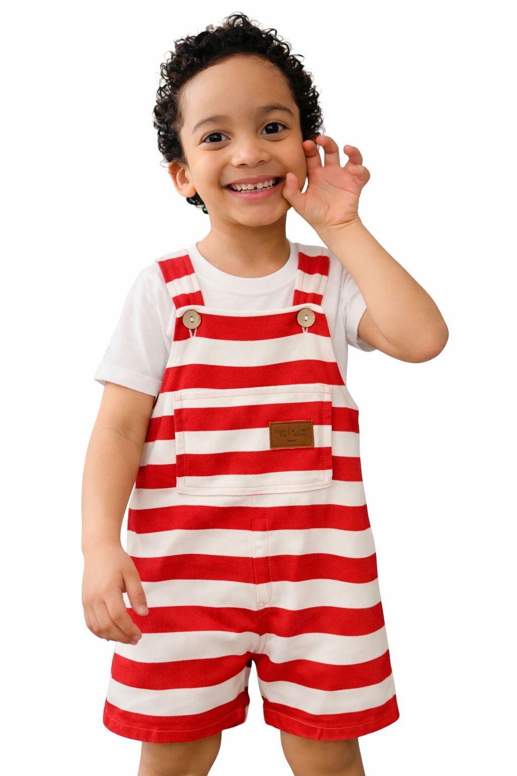 Com fundo branco e listras vermelhas, ela traz um visual alegre e atemporal para os pequenos.